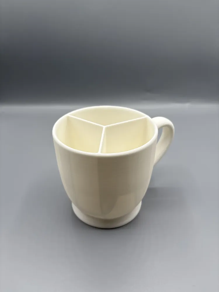 - Cette tasse dispose de trois compartiments